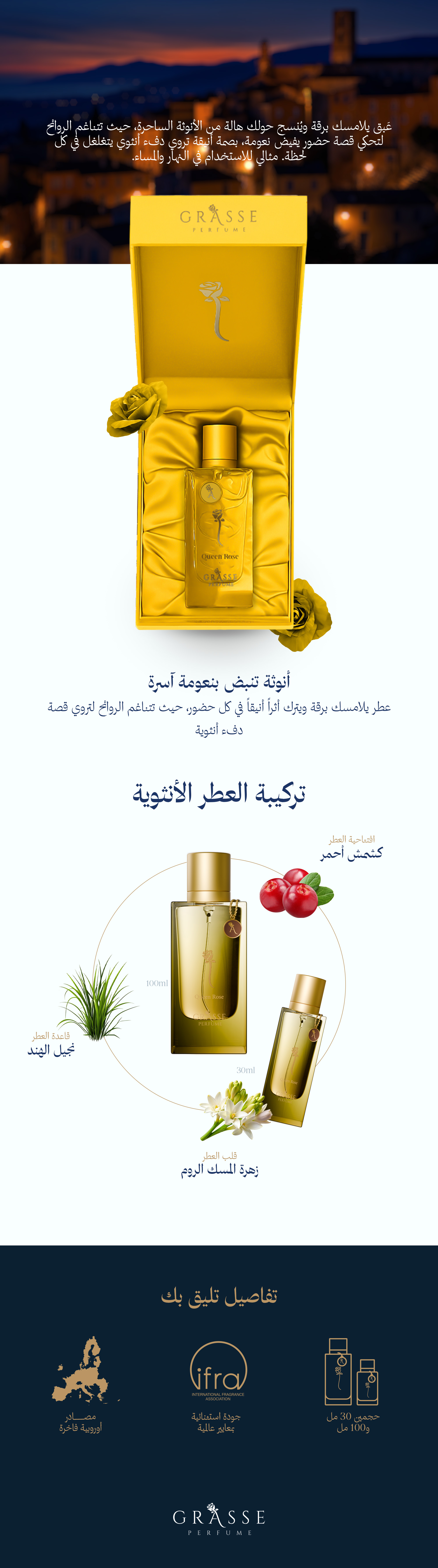 اقتني الآن عطر كوين روز من قراس وتمتعي بإطلالة متألقة وحضور لا يُنسى.